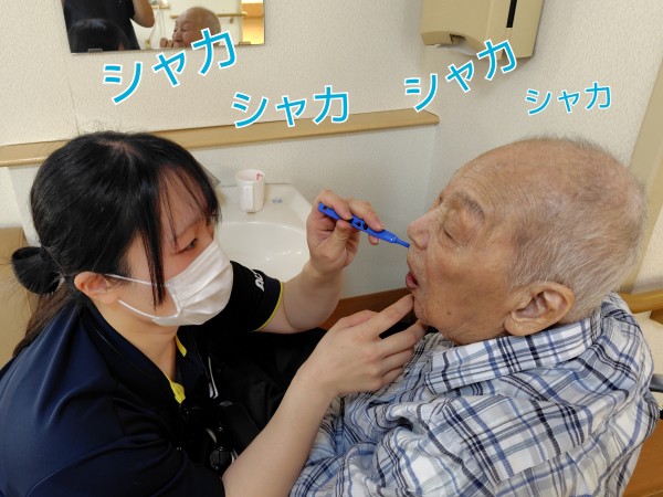 おじぃさま、食後の歯みがきタイムです!