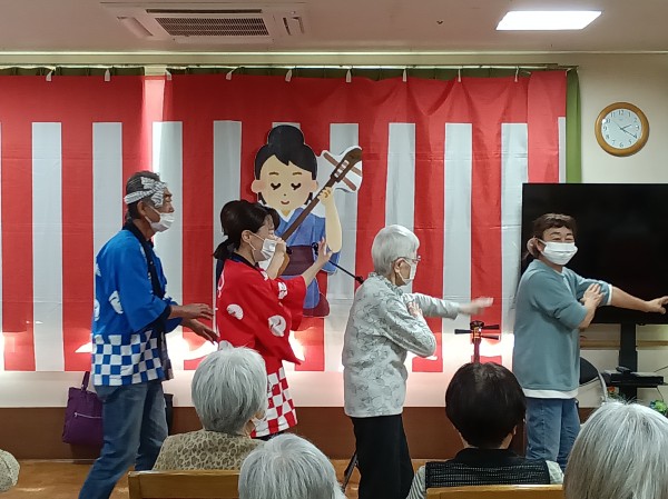 中でも「ソーラン節」はコース&レスポンスを楽しめる楽曲となっており、東京音頭はご利用者様と職員で楽しく踊らせて頂きました(*^▽^*)