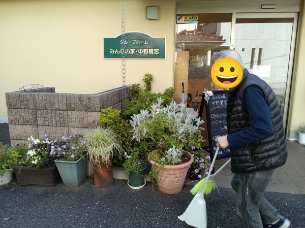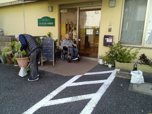 グループホームみんなの家・中野鷺宮で先日、風雨が強かったので玄関前の鉢植えが心配で風が落ち着いてから玄関へ行きました。
