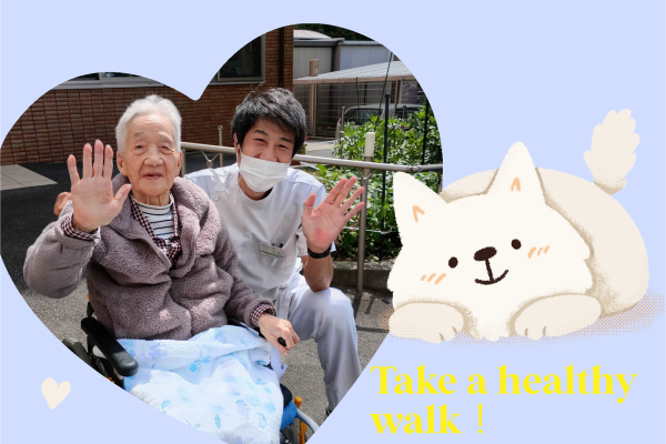 また、ご希望に応じて外気浴や歩行訓練の指導も受けることができます。ご入居者様一人ひとりの体調やご希望に合わせて、幅広い選択肢をご提供しており