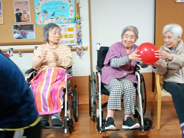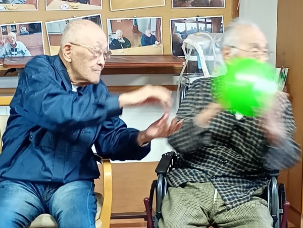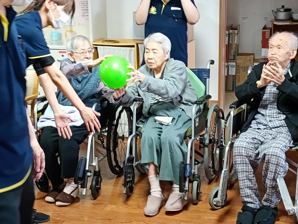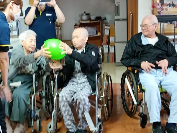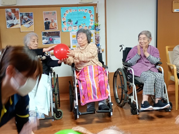 2チームに分かれ隣の席の方に風船を渡していきます。