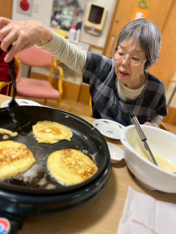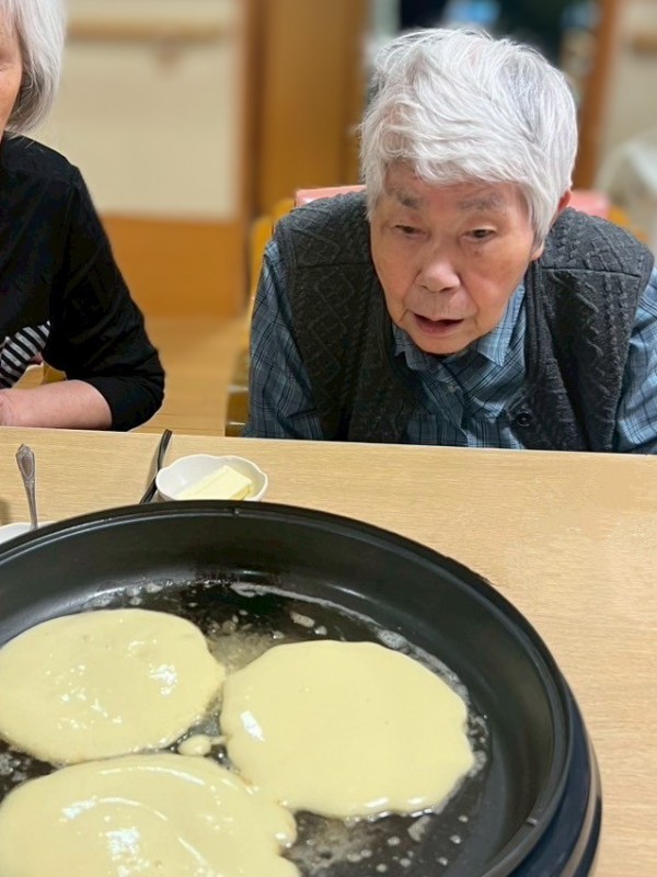 その声をきっかけに、急きょ企画されたのがホットケーキ作りのレクリエーションです。