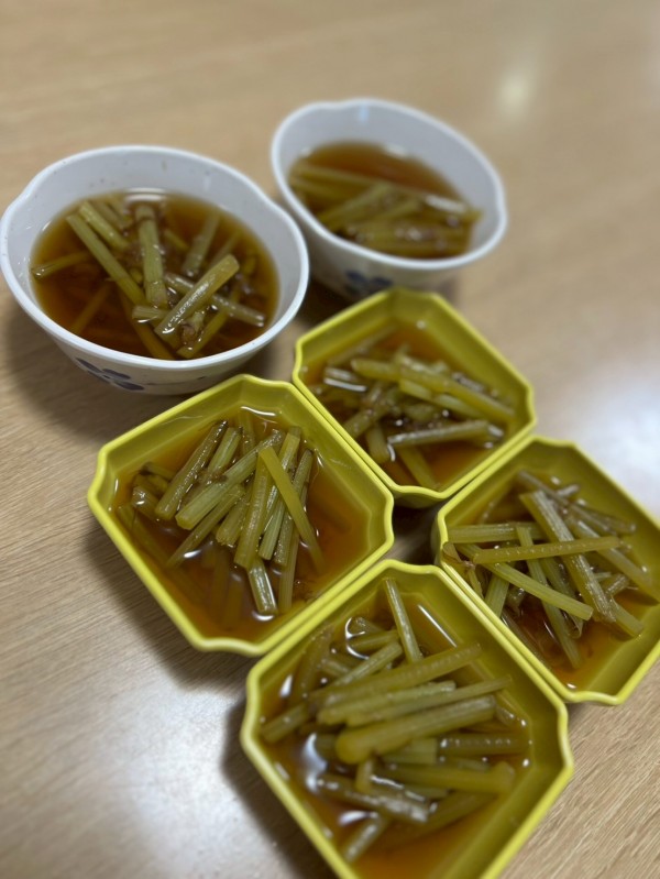 皮をむいたり、適当な長さに切ったりと、役割を分担しながらフロアで和気あいあいと作業が進みました。