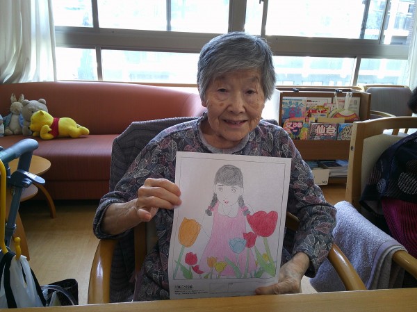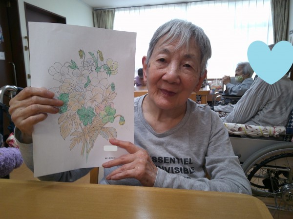 先日のレクリエーションで塗り絵をされていた方の作品が完成しましたのでご紹介させていただきます♪