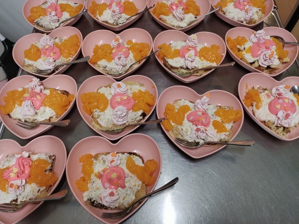 いちごイチゴ風味のクリームとフルーツのクリームをトッピングしました(*´༥`*)