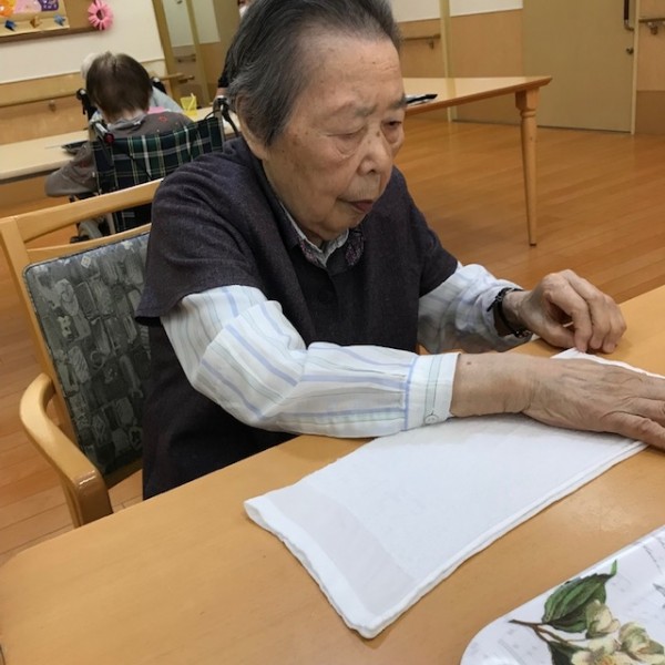 先日、スタッフの仕事のひとつである“おしぼり作り”を