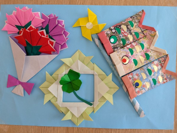 ゴールデンウイーク・端午の節句・母の日と様々な行事がある中、ご利用者様のご家族が折り紙で素敵な壁飾りを作られ