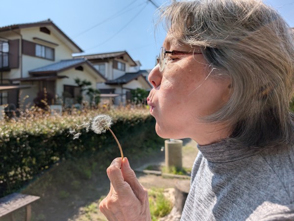 以前、まるまるした綿帽子のような綺麗な綿毛を見つけて、利用者様と綿毛飛ばしをして大笑い!!