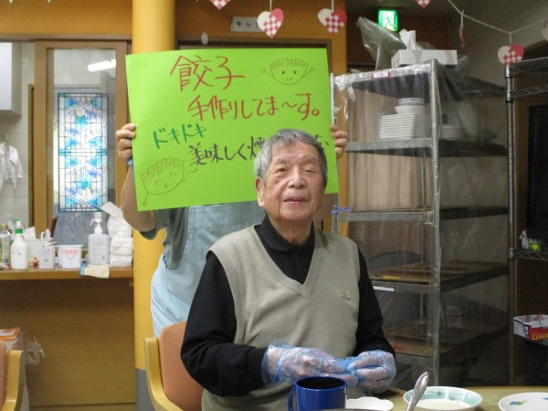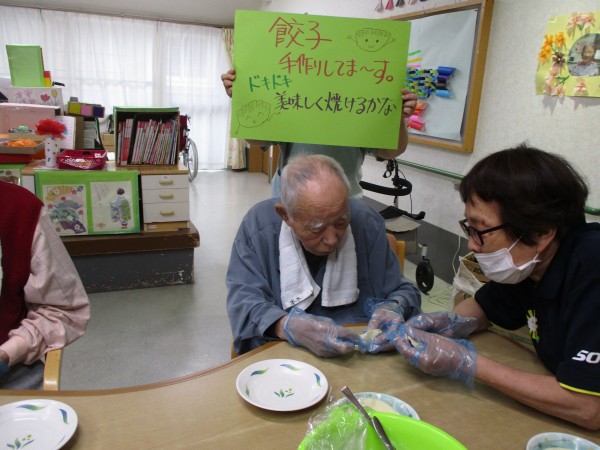 先日、母の日のお祝いレクとして入居者様たちと一緒に餃子を作りました!