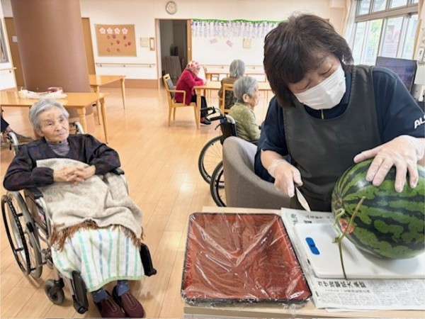 ご家族様が大きなスイカを2つも差し入れしていただき、みんなでご馳走になりました!