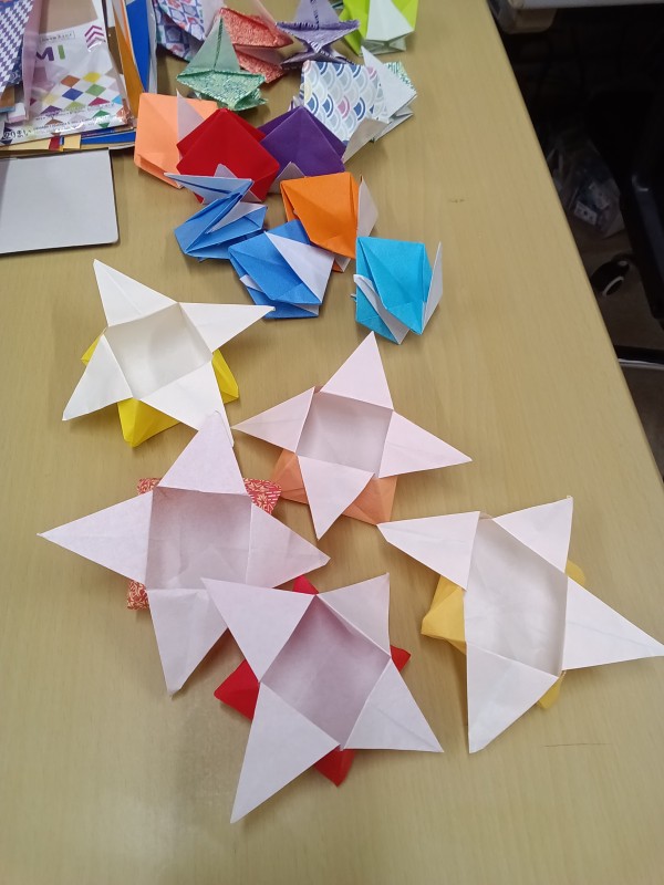 おやつ入れを「どうしようか?」と考えた末にご利用者様と折り紙で