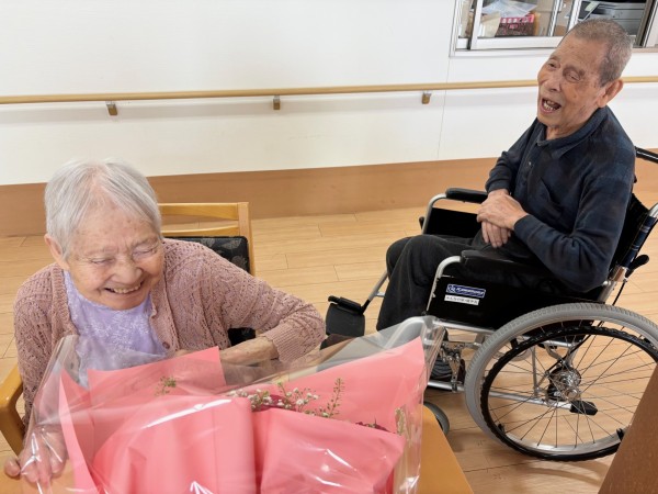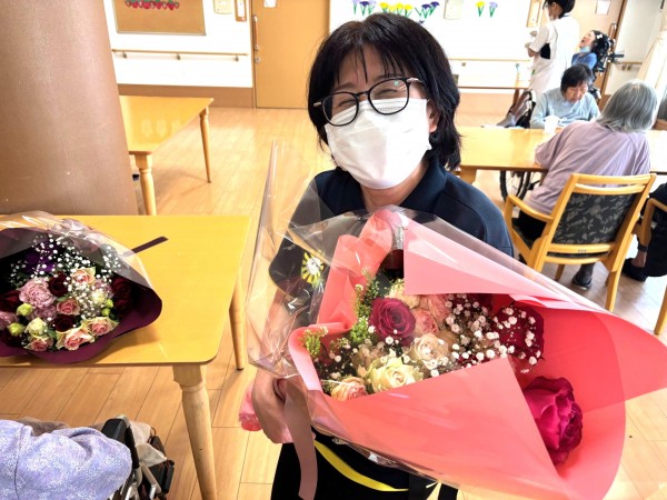 そして南中丸のご利用者様や職員にも花束のプレゼントをご用意していただき、ご家族様には心から感謝いたします