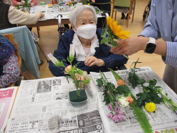 先月とは違ったお花のラインナップに利用者様もウキウキのご様子♪