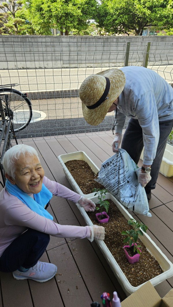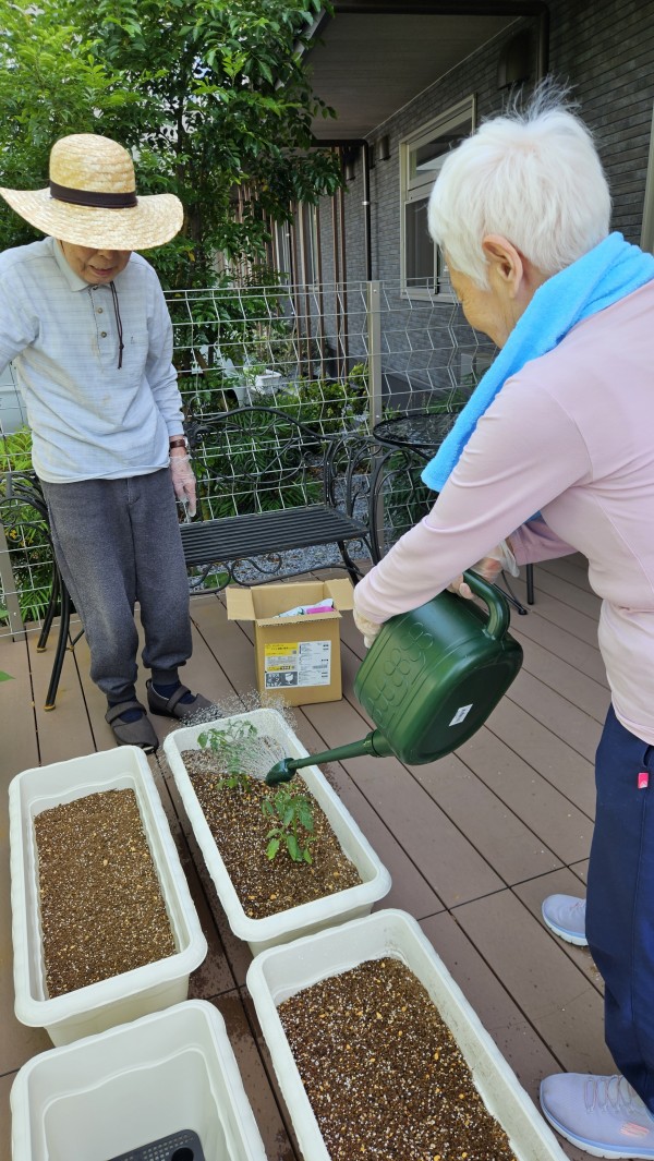 当施設のテラスでお野菜を育て始めました(*^-^*)!!