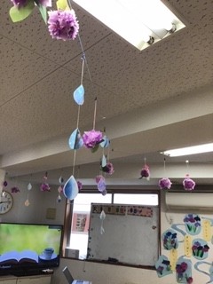 雨のしずくちゃんと一緒に、天井に飾りました(^_-)-☆