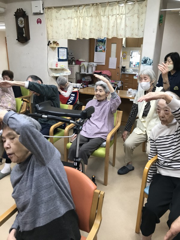 本日はアルソック体操の岡田先生来設で普段動かさない腸の運動を行いました。