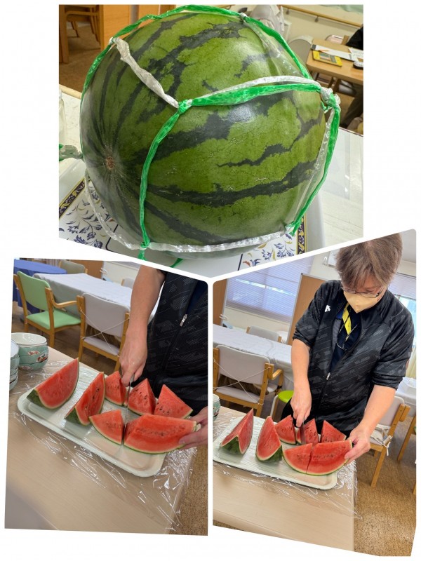 大きなスイカにご利用者様から早く食べたいと喜んでいただきました♪