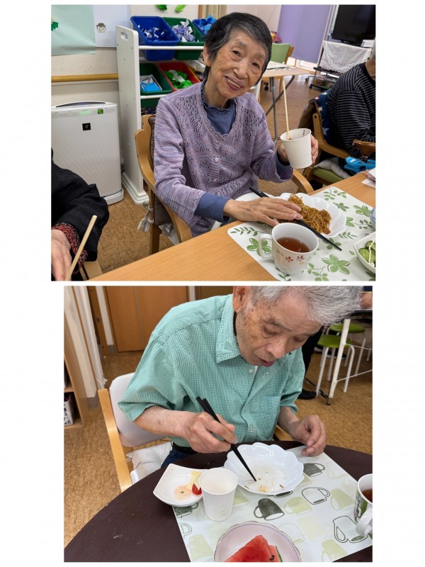 ご利用者様からのリクエストをいただきまして!! お昼ご飯でお祭りへ行ったような気分をデイ相模台にて味わっていただきました♪
