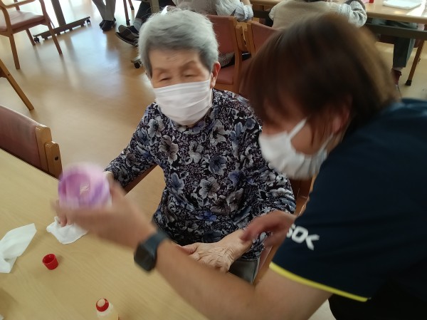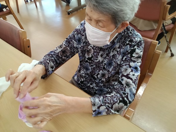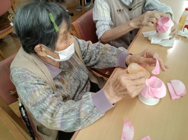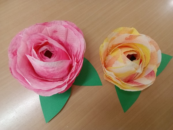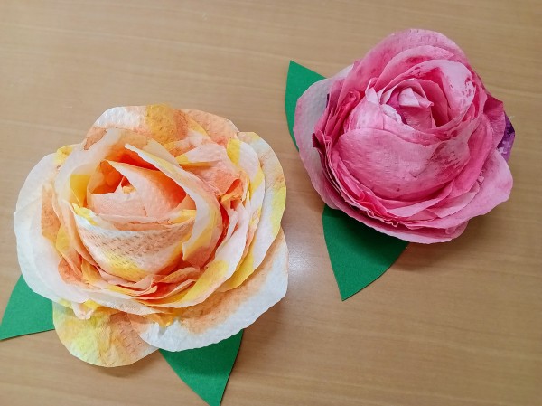 今月はペーパータオルを使って(職員さんが綺麗に染めてくださいました!)