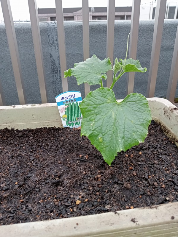↑こちらはきゅうりの苗です。一週間でこんなに大きくなりました↑