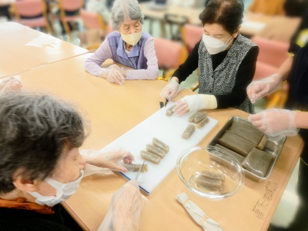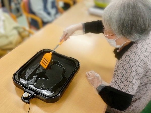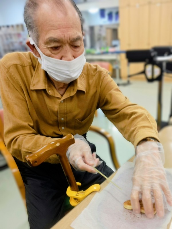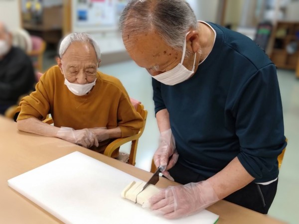 職員もご利用者様も?を浮かべつつ出来るだけ崩れないよう慎重に切りました。