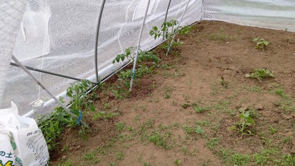 得意な職員2名で一生懸命に設置してくれ、風の強い日は紐で抑えたりとハウスの面倒を見ています(笑)!