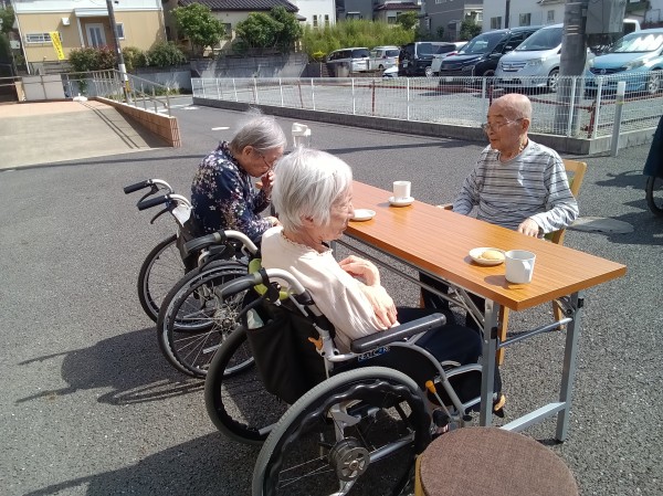 先日は天候が良く、日光浴をしながらおやつタイムにしました。