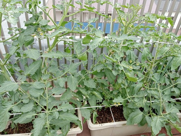 花もたくさん咲いていて、トマトの実ができてきています。
