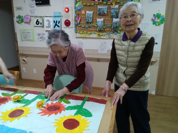 ひまわりの景色を貼り絵で作っていただきました。
