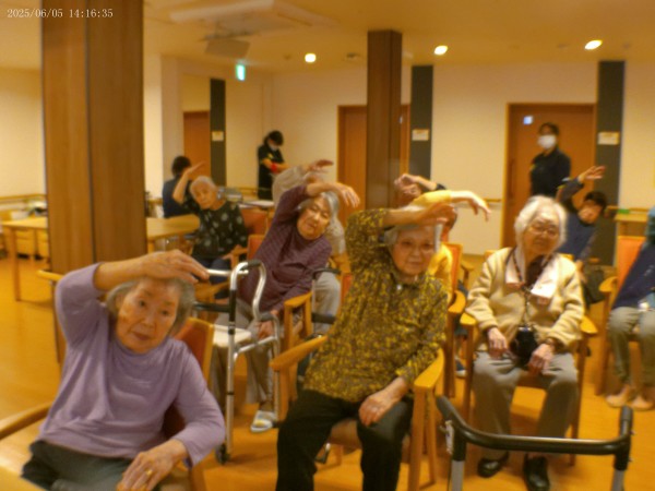 こんにちは(❁´◡`❁)。介護付き有料老人ホームアミカの郷津田沼スッタフブログです╰(*°▽°*)╯いつもご覧いただきありがとうございます。6月5日に岡田先生による毎日ノーア3「腸活プログラム」。快便!!目指してみんなで頑張ろう!(^^)!たまたまTV画面が見にくいのでカーテンを閉め、電気を半分消して、薄暗くしてみたら、癒し効果なのか、なんとなくいい感じです(*^^*) 1Fの利用者様達も楽しみにされており、たくさんの人が参加してくれています。