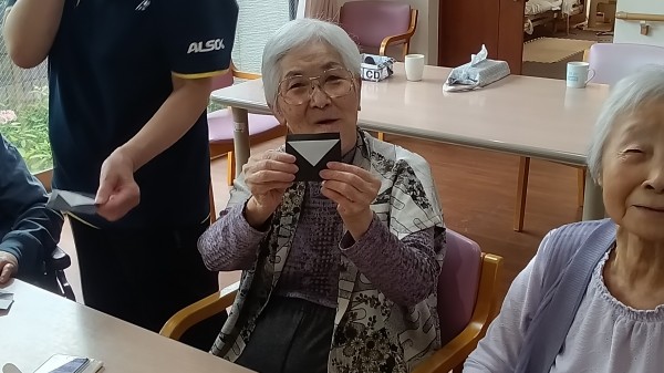 今日は折り紙で季節の飾りつけ作っている様子です(*´▽`*)