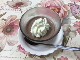 冷たくなったババロアプリンに、生クリームを飾って、、、♡