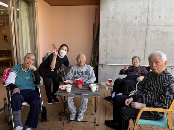 職員もご一緒に会話を楽しみながら笑顔に癒される一時でした^^♡お天気の良い日には積極的に外気浴やお散歩に行きましょう\(^o^)/