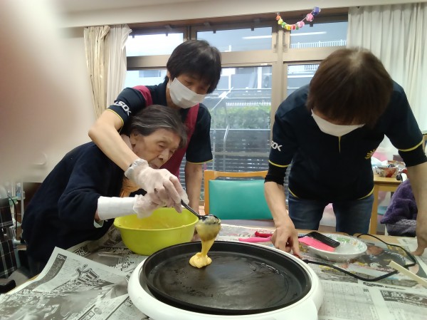 1階のみなさんと作った甘くて美味しいできたてホヤホヤどら焼き(^^)