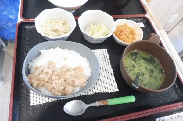 ミキサー食は副菜をブレンダーを使用して粒をなくして提供です。