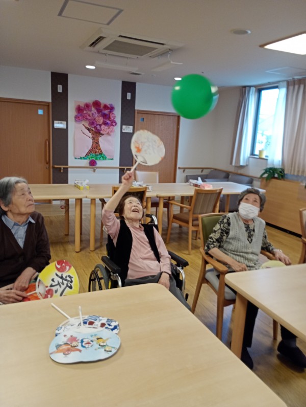 仰いで飛ばすのはいい腕や手首の運動にもなりますね。かなり長い間、風船を落とさずに楽しまれていました。