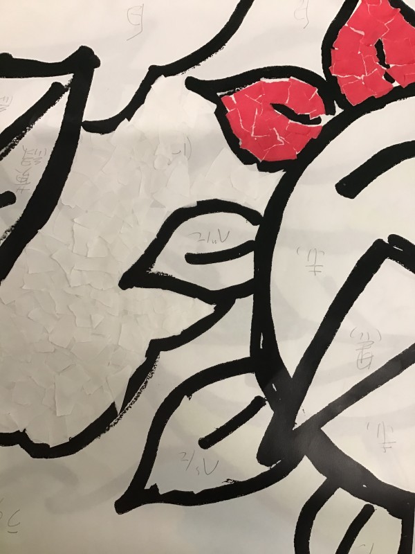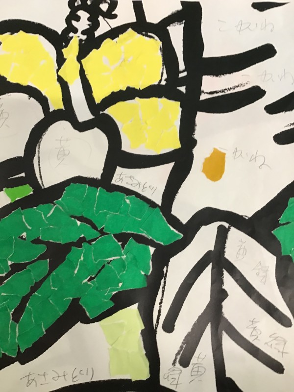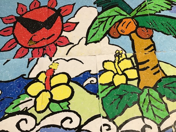 そこで夏らしい絵柄の大きなちぎり絵を制作しました。