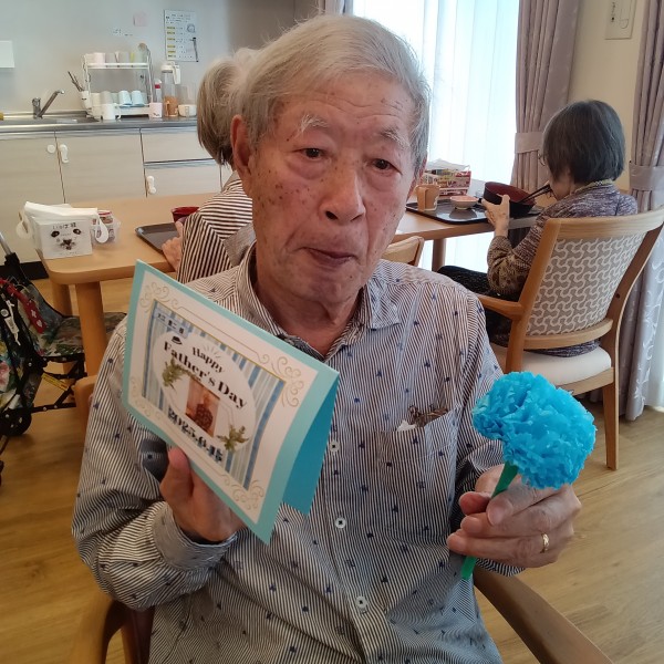 男性(父)11名に職員より カードとカーネションお渡しさせていただきました。。。