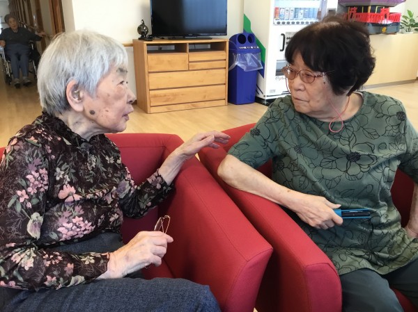 2階のソファーで毎日高齢の女子会ですが、今日は何やら話が盛り上がっていました。