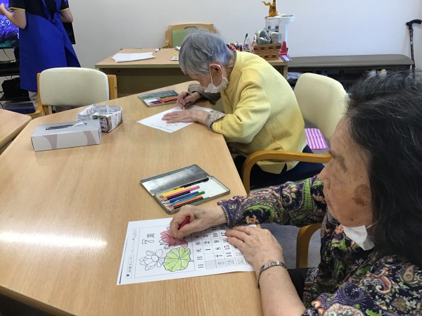 ご自分が好きな季節の模様を選んでいただき色を塗り、来所される日もぬります。