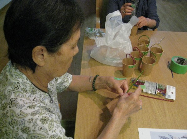 紙コップとモールを使って、ちょっとした工作をおこないました(^^)