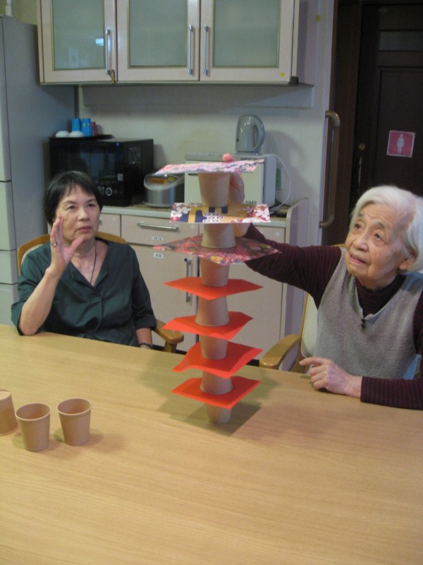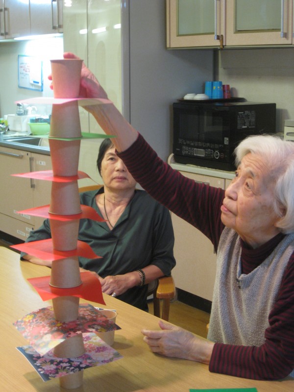 紙コップと折り紙を交互に積み上げていくだけ♪