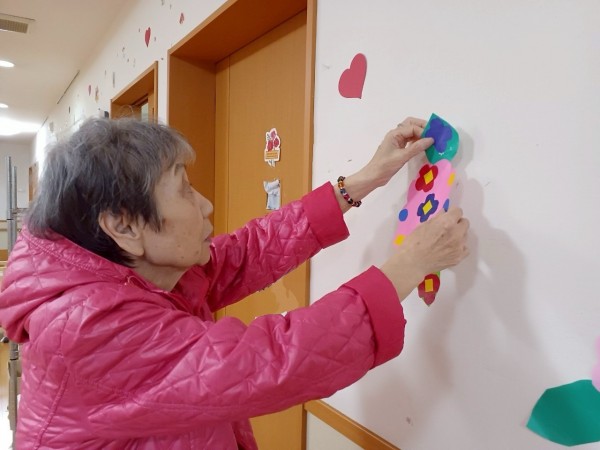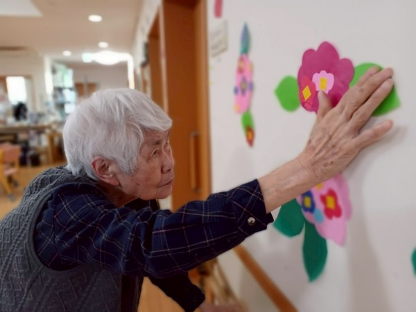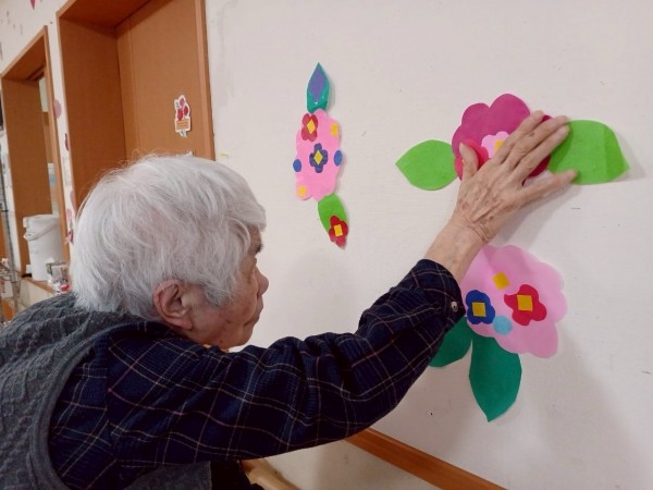 ちょうど、ご利用者様がご自身の居室付近に紫陽花の飾りつけをしていました!