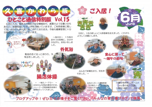 介護付有料老人ホームみんなの家・久喜です。