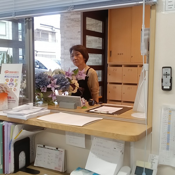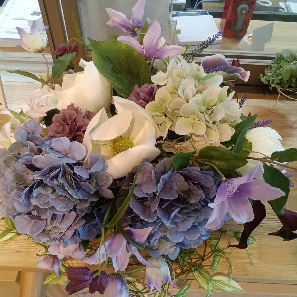 アミカ小平あじさい公園の受付に置いてあるこのお花 実はフラワーアレンジメントの先生をやっていたご利用者様が作ってくださいました。