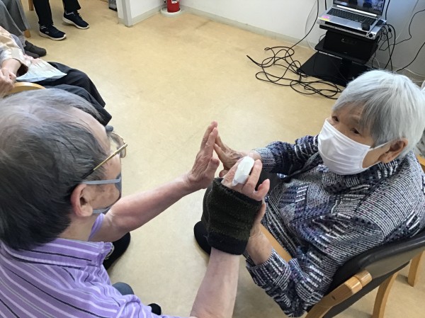 見つめあって一緒に体操をすると気持ちもひとつになってきたように、お身体もしっかり動かすことができていました。