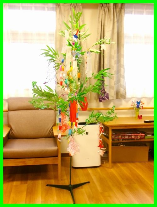 7月7日の七夕に向けて、笹に飾り付けをしました。