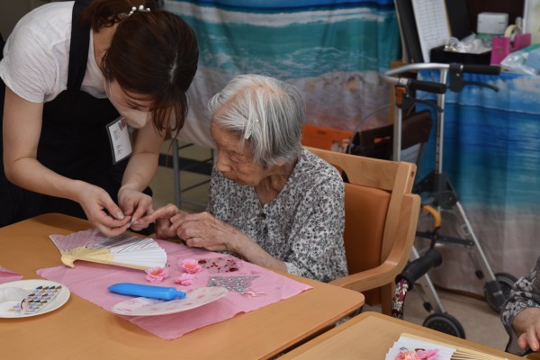 美容レク「オリジナル扇子づくり」