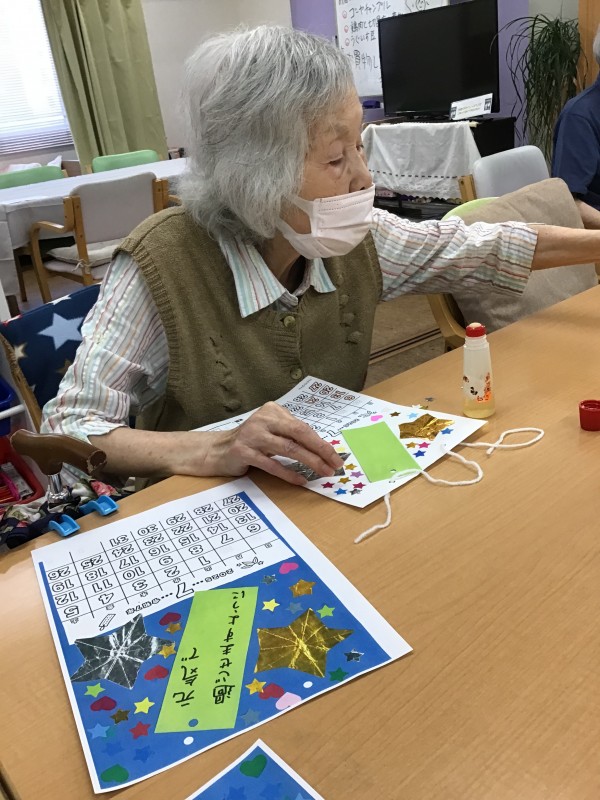 7月のカレンダーはお星さまに七夕の短冊飾りを貼り、願い事を書く。という、