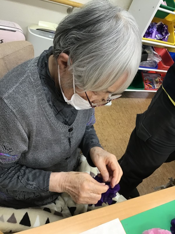 うすーいお花紙を開く作業に集中される方や、